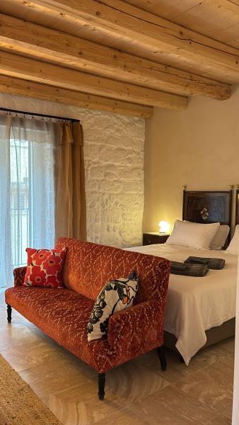Abitazione con BalconeL’appartamento, raccolto e confortevole, è composto da un unico ambiente in cui il letto king size si integra armoniosamente con la zona soggiorno, completa di divano, tavolo e sedie. Separato da questo ambiente principale troviamo un pratico cucinino attrezzato con tutto il necessario per preparare i vostri pasti. Una scala esterna conduce direttamente al giardino privato della residenza, ideale per momenti di relax all’aria aperta.