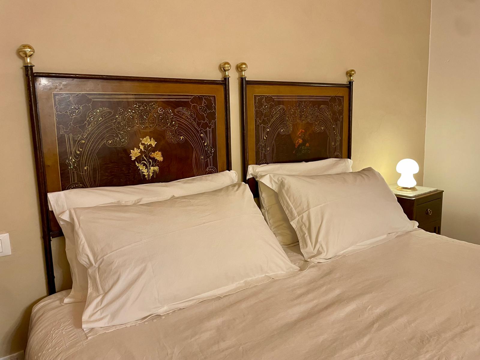Stanza, dispone di letto matrimoniale king size (180x200), divisibile in due letti singoli; materassi e cuscini sono ignifugi, omologati in classe 1IM e conformi alla norma UNI 9175. La stanza è inoltre dotata di cuscini a differente densità così da soddisfare il livello di sostegno più adatto alle vostre preferenze.